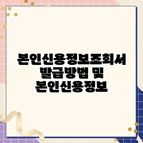 본인신용정보조회서 발급방법 및 본인신용정보