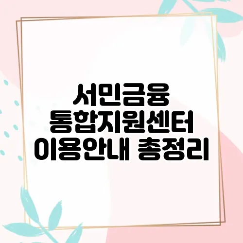 서민금융 통합지원센터 이용안내 총정리