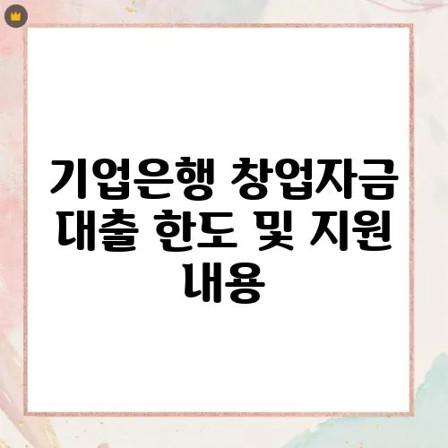 기업은행의 창업자금 대출은 자금 조달 측면에서 많은 도움을 줄 수 있습니다. 대출 한도와 지원 내용을 충분히 이해하고, 자신의 상황에 맞는 대출 방법과 조건을 고려한다면 성공적인 창업을 이룰 수 있을 것입니다. 대출 신청은 처음엔 부담스러울 수 있지만, 여러분의 비즈니스 꿈을 이루기 위한 중요한 첫 발걸음이 될 것입니다. 이제 여러분이 원하는 대로 창업을 위한 기회를 잡아보세요!
