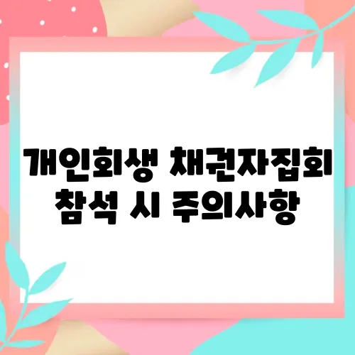 개인회생 절차를 통해 채무를 경감하고 새로운 출발을 꿈꾸고 계신가요? 그렇다면 채권자 집회에 참석하는 것이 중요한 단계임을 아실 것입니다. 여기에서는 개인회생 채권자 집회 참석 시 주의사항에 대해 자세히 알아보겠습니다. 이 정보를 통해 여러분이 채권자와의 만남에서 자신감을 갖고 준비할 수 있도록 돕고자 합니다. 준비가 되셨나요? 함께 살펴보겠습니다.